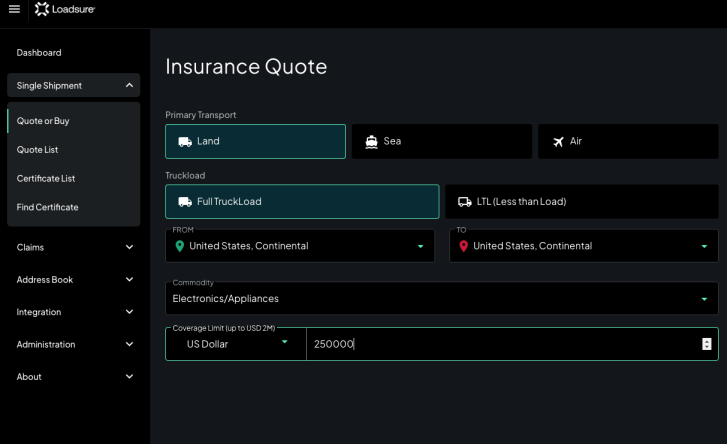 For freight brokers: Protect clients on the spot. Quote and bind directly in our portal or embed Loadsure in your TMS in as little as 24 hours.